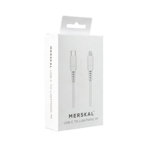 Merskals USB-C till Lightning-kabel gör det möjligt för dig att ansluta dina Apple-produkter till väggladdare, powerbank eller bil med USB-C-uttag. Kabeln är 1 meter lång och har stöd för en laddningshastighet på 3A samt en överföringshastighet på 480 mb/sek när du ansluter din Apple-enhet till USB-C-uttaget på datorn. Ladda din iPhone, iPad och iPod på nolltid med denna 60 W PD-kabel (power delivery). MFI - Certifierad för Apple Kabeln är certifierad med MFI (Made for iPod, iPhone & iPad). MFI-märkningen innebär att ett tillbehör har utformats särskilt för anslutning till iPhone, iPad och iPod-enheter, och att tillverkaren intygar att tillbehöret uppfyller Apples prestandastandarder och garanterar kompatibilitet även efter framtida iOS-uppdateringar. Stöd för snabbladdning (3A) Kabeln har stöd för 3A vilket innebär att du med en kompatibel USB-laddare (exempel Merskal Dual USB-A USB-C Power Adapter 18W) för vägguttaget eller bilen får en laddningshastighet som är tredubbelt så snabb jämfört med kablar som har stöd för 1A.